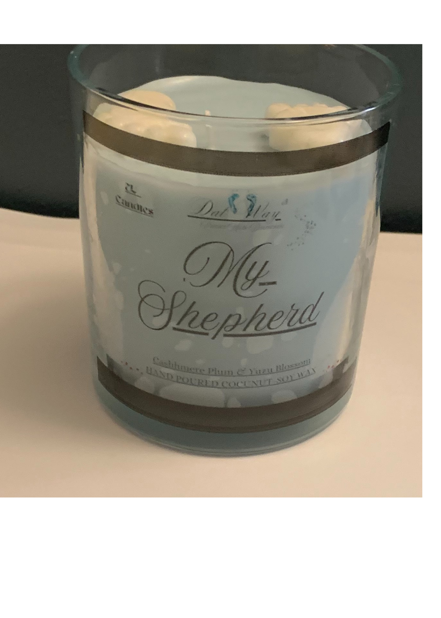 Inspirational candle from bible verse Psalm 23:1 with fragrance of Yuzu Blossom & Cashmere Plum.